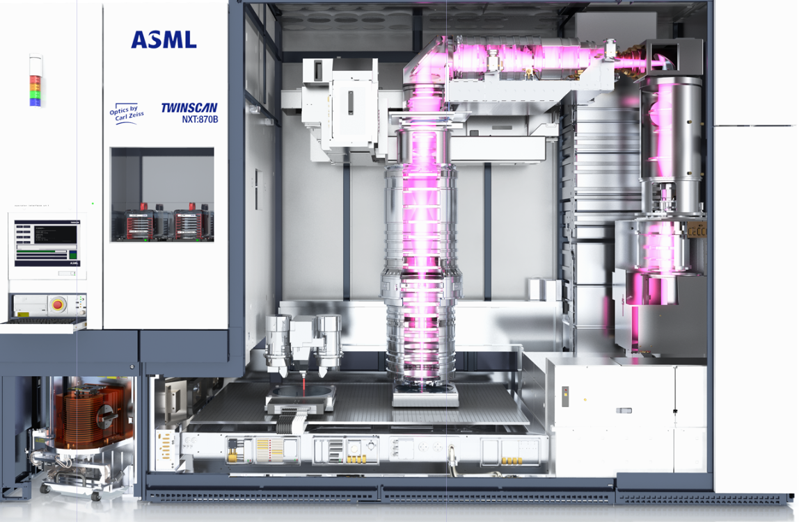 TWINSCAN XT:260、TWINSCAN NXT:870B是一款i线光刻机,光源用的是365nm的,扫描曝光,分辨率不高于400nm,NA 0.35,每小时晶圆产量可达270片,可以处理最高1.7mm厚度的300mm晶圆,而非通常的775um厚度晶圆。
