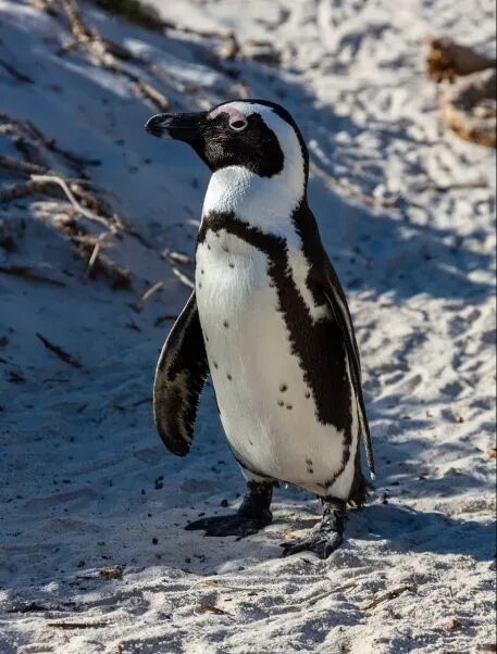 在这座岛屿上并没有企鹅,它所在的非洲大陆的最南端倒是分布着南非企鹅(或者叫非洲企鹅、斑嘴环企鹅)。它们的外形和动画片里的企鹅形象很不一样,它们的肚子上有明显的斑点和一个黑色条纹。