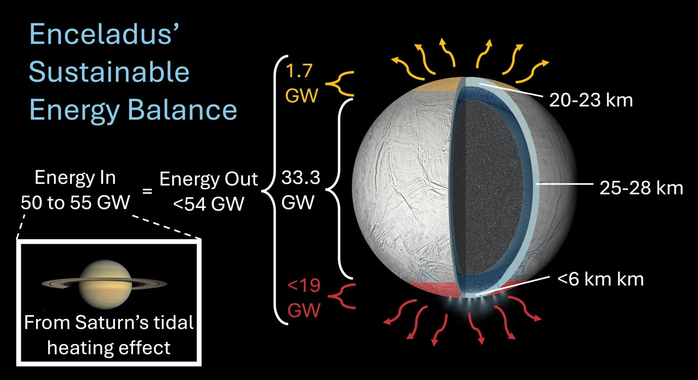 为了让生命得以持续,土卫六的海洋必须保持稳定——热量获得与损失需保持平衡。这种平衡依赖潮汐加热:每次围绕土星公转时,土星的巨大引力都会导致卫星内部摩擦并产生热量。若潮汐能量削弱,海洋可能逐渐冻结;反之,过于强烈的活动又可能破坏海洋的稳定状态。