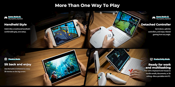 屏幕达到了10.95英寸,远超一般掌机常见的8寸左右,就是一个小平板了,事实上两侧手柄都是可以拆卸的,从而变身小平板。