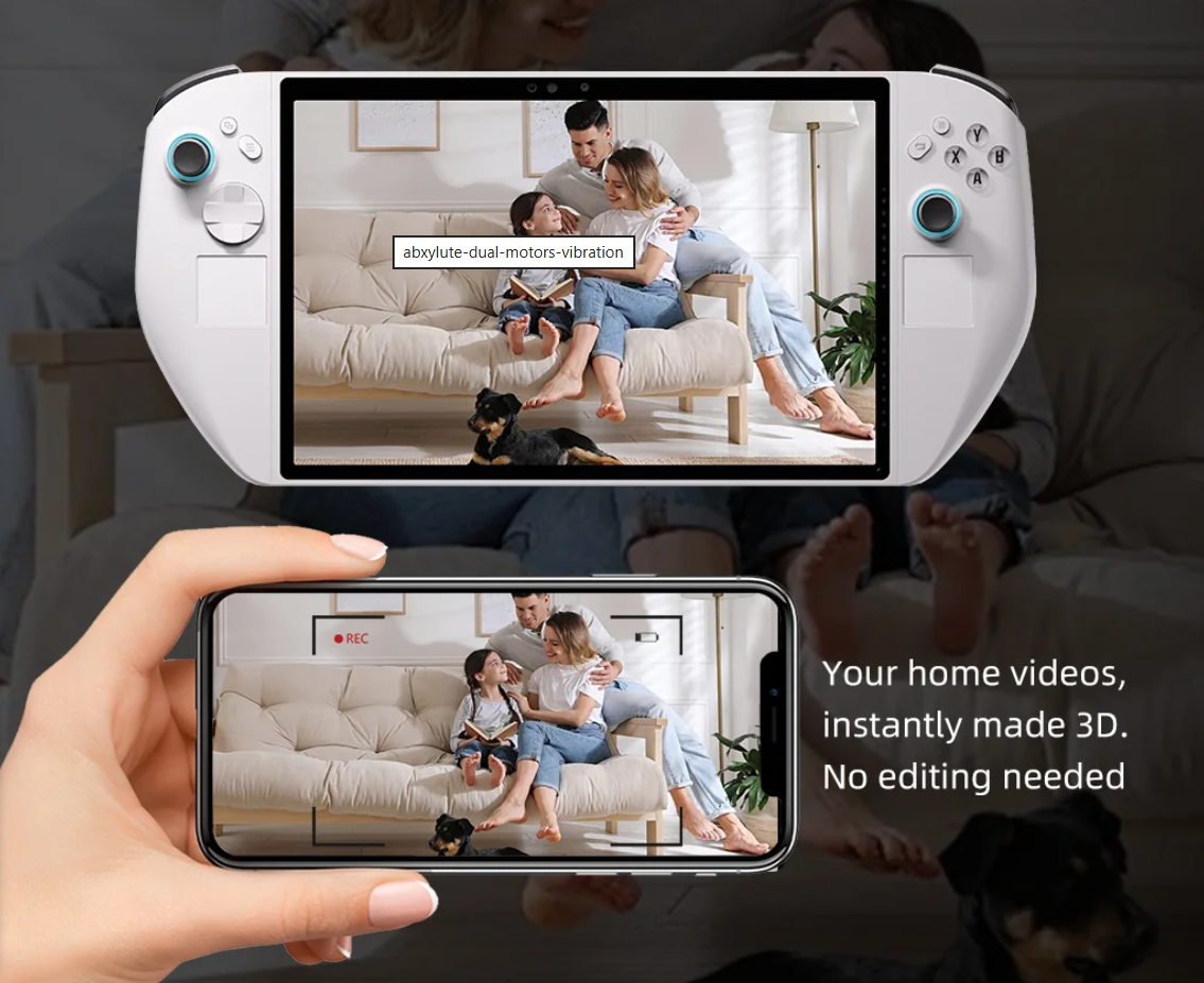 Abxylute称首发时会有大约50款裸眼3D游戏,还支持2D-3D实时转换,能够一键将2D电影、照片转换为3D效果。