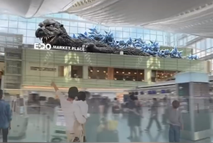 此外,2023年电影《哥斯拉:消失的一课》中的哥斯拉雕像也将放置在到达大厅。