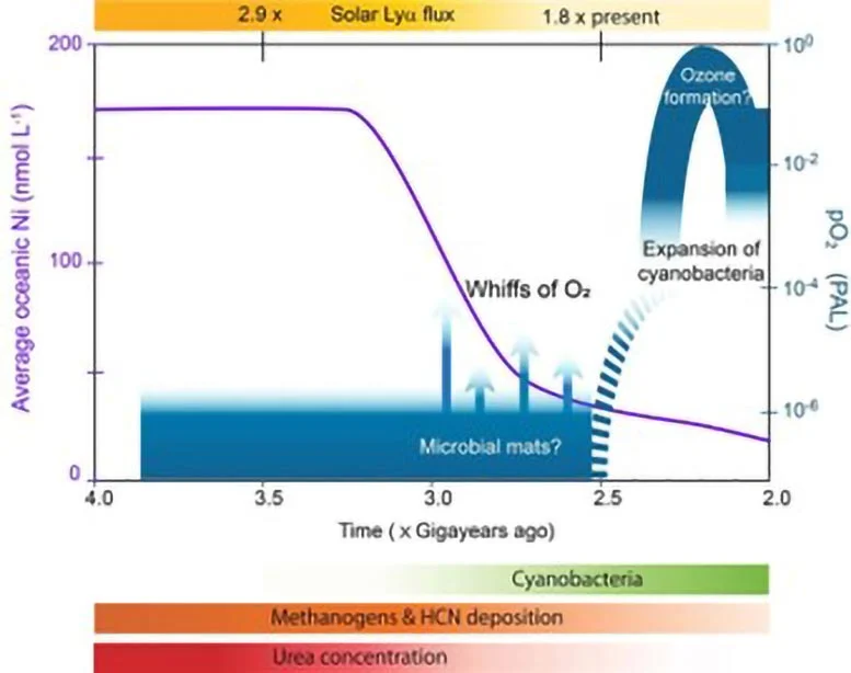 一项最新研究揭示,镍和尿素曾制约地球最早的产氧生物,加剧了地球氧气积累的神秘延迟。科学家们发现,这两种被忽视的化合物在近十亿年间限制了蓝藻的繁殖,直到它们逐渐减少,氧气才得以在地球大气中大量释放,引发“伟大的氧化事件”。