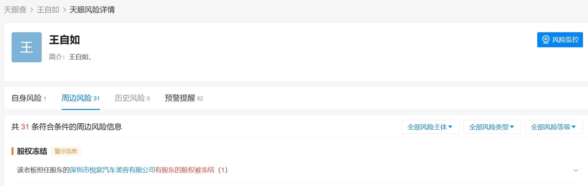天眼查风险信息显示,2024年王自如因未按时履行生效法律文书确定的给付义务,目前已被限制高消费。