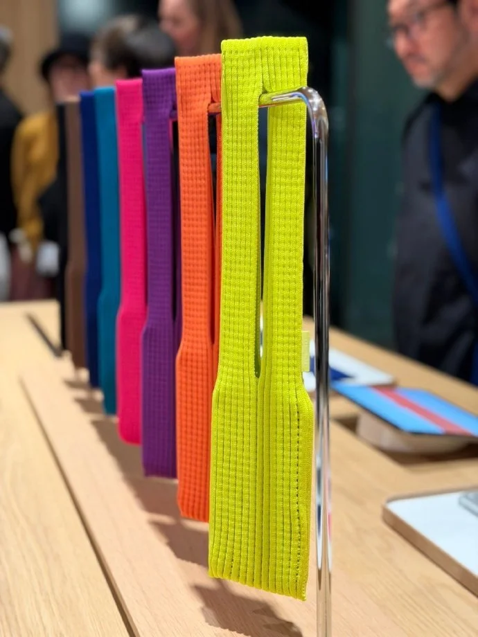近日,苹果与三宅一生合作推出iPhone Pocket配件,短带款有柠檬色等8色,售价1299元;长带款提供宝石蓝等3色,售价1899元。并且官网标注:数量有限,售完为止。