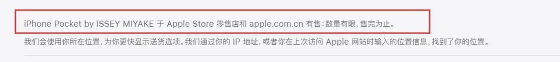 据了解,中国大陆仅在上海Apple静安零售店和苹果官网有售iPhone Pocket。媒体报道称,店内蓝色长款已卖完,店员表示暂不清楚后续是否会补货。尽管是工作日的上午,店内仍有不少人咨询试戴这款新品。