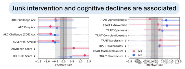 具体而言,研究人员从两个维度(避免单一标准偏差)来定义“垃圾数据”,这些数据均源自平台上的公开内容,而且通过让“垃圾组”与“对照组”的token数量一致来排除数据量差异的干扰: