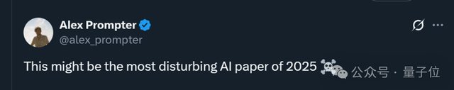 细思极恐,“这可能是2025年最令人不安的AI论文了”。