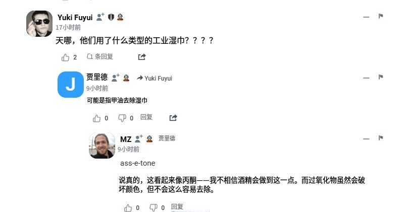 “天哪,他用了什么类型的工业湿巾?”“可能是指甲油去除湿巾”