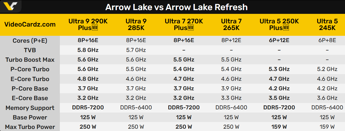 Intel预计会在明年初的CES 2026上发布升级版Arrow Lake Refresh,这也将是LGA1851平台的最后一波,再往后就是后年的LGA1954 Nova Lake。Arrow Lake Refresh将会被命名为酷睿Ultra 200K Plus(第一次看到处理器也叫Plus),至于是不是会有非K版本还不清楚。