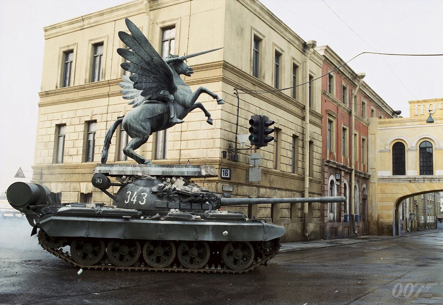副导演伊恩·夏普率领第二摄制组赶赴圣彼得堡拍坦克追逐戏,剧组为此以单价1万英镑买下三辆前苏联坦克:两辆T-54,一辆T-55,它们尽力模仿当时苏联最先进的T-80BV,在圣彼得堡大街上横冲直撞: