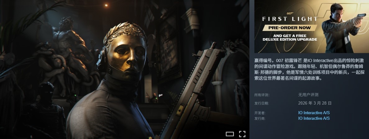 亚马逊收购米高梅后推出的首部007作品也是一款游戏,《007:初露锋芒》(007 First Light)由IO Interactive开发,明年春天发布: