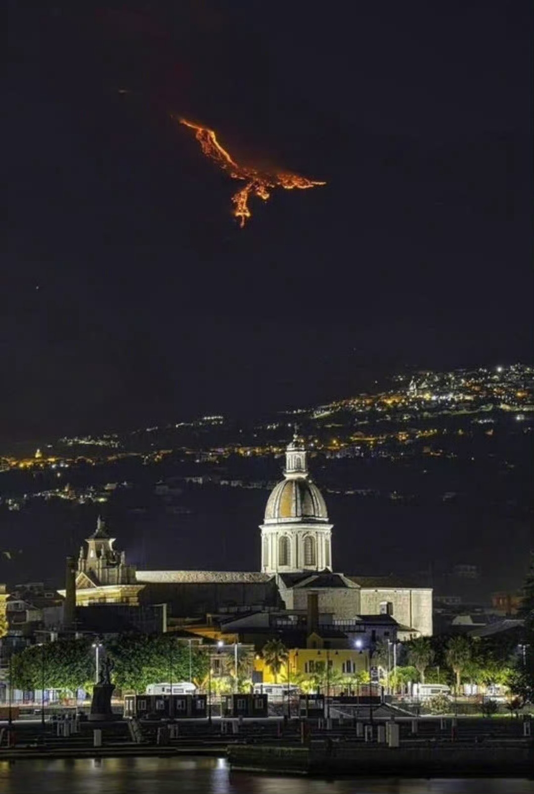 火山喷发确实会形成难得一见的奇景,2019年意大利Etna火山喷发时,在夜空形成了栩栩如生的“火凤凰” ,后续多次喷发也形成了类似的场景,引人神往。