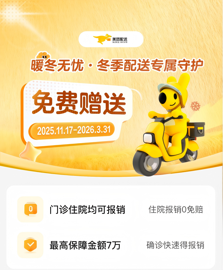 值得注意的是,300万份“防寒险”由美团全额买单,无需骑手操作,自动提供保障。