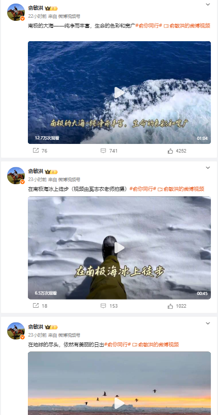 可令人没想到的是,俞敏洪在社交平台又接连发了10条南极游视频。