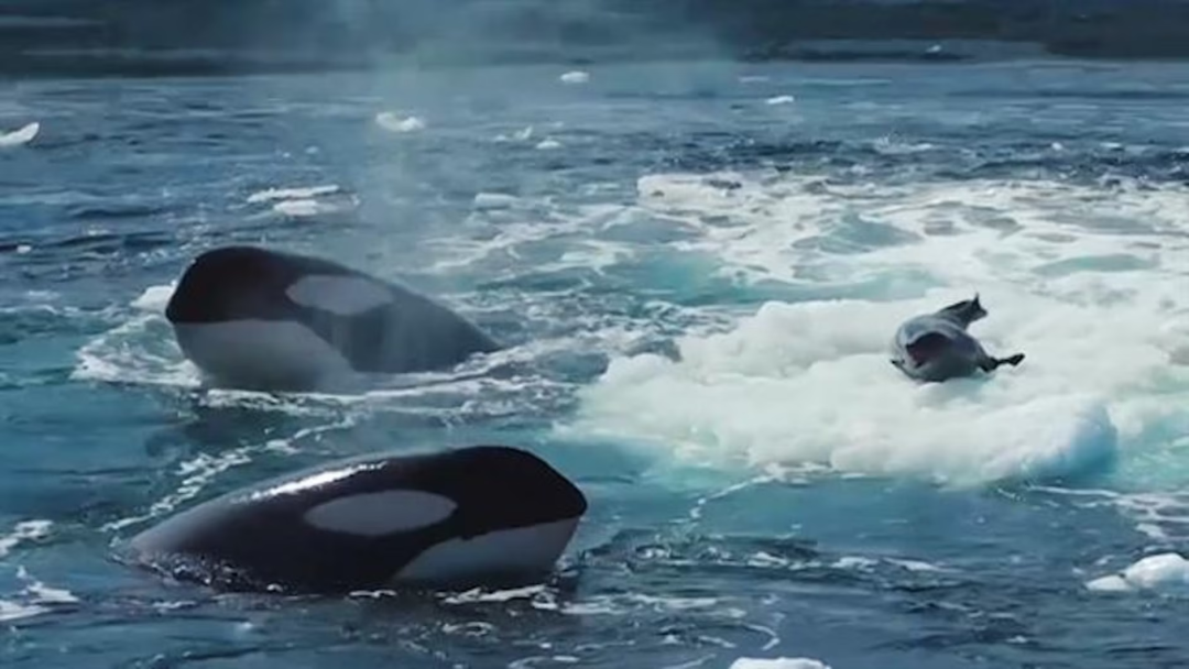 熟悉虎鲸的查维特发现这群虎鲸游泳的动作很整齐,还不停用尾巴拍打水面,就意识到它们是在捕猎。