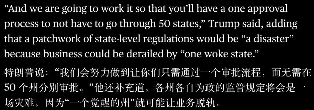 但这还不够,特朗普政府显然认为,现有的联邦体制正在拖累AI发展的脚步。