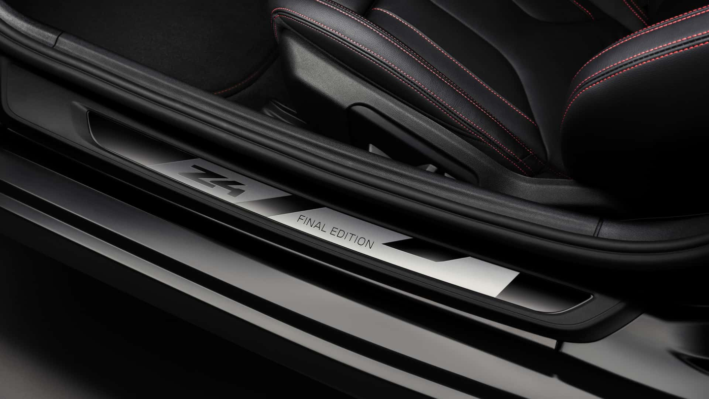 车内以红色缝线贯穿仪表台、中控台、门板、脚踏垫与M Sport座椅,座椅使用Vernasca皮革结合Alcantara包覆,并以专属门槛饰板强调Final Edition的独特身份。