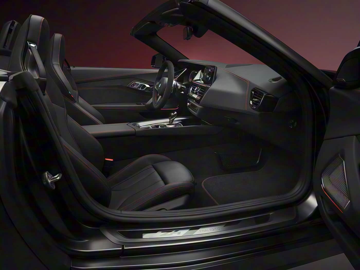 最终版采用宝马个性化定制的磨砂黑金属车漆,配备暗夜套装,针对后视镜外壳、双肾格栅、下部进气口以及排气口均加入了亮黑色装饰件,并使用月光黑软质顶篷和红色刹车卡钳,提升车辆的运动感。
