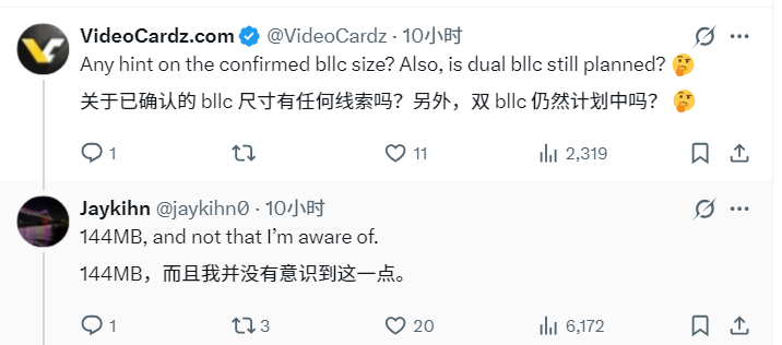 根据Jaykihn最新爆料,Nova Lake-S中的不锁频(K)型号,预计将配备144MB的bLLC缓存,以最大化其游戏性能潜力,直接对标AMD的X3D系列芯片。