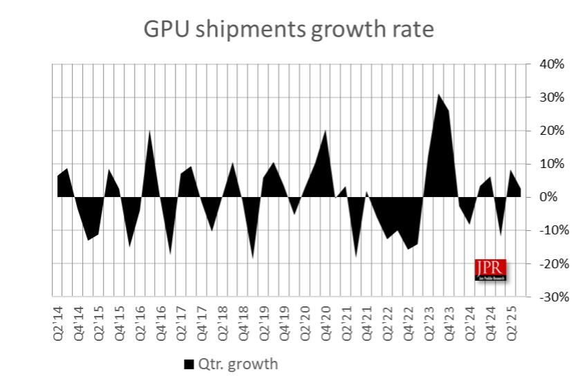 整体GPU出货量同比去年增长了4.0%,其中独立显卡出货量实现了10.7%的同比增长,而笔记本GPU的增长率为1.4%。
