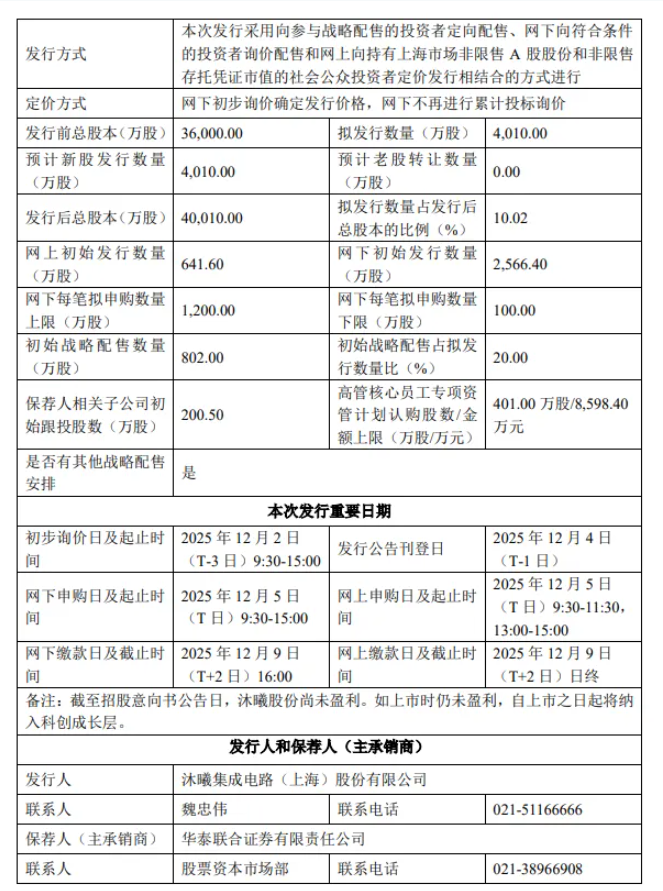 摩尔线程也今天正式登陆A股,与此同时,另一家国产GPU龙头企业沐曦股份今日也开启网上、网下申购。根据沐曦股份发布的首次公开发行股票并在科创板上市发行安排及初步询价公告,本次发行拟发行数量4010万股,初始战略配售数量802万股,网上申购代码787802。
