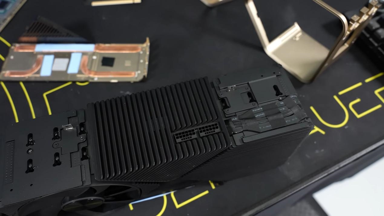 内部布局方面,拆解证实了该卡内部设计的非同寻常,承载GPU和显存的主PCB与主板平行安装,而一个单独的PCIe PCB则负责插槽接口,并连接至主板。