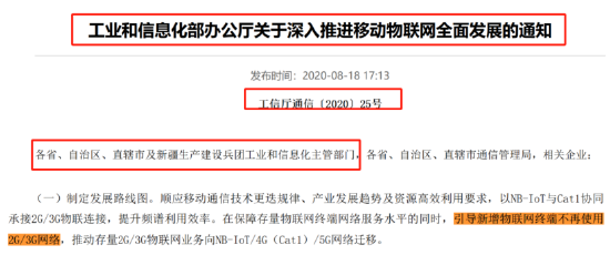 《BUG》栏目注意到,早在2020年8月,工信部就曾印发《关于深入推进移动物联网全面发展的通知》,要求“引导新增物联网终端不再使用2G/3G网络”。