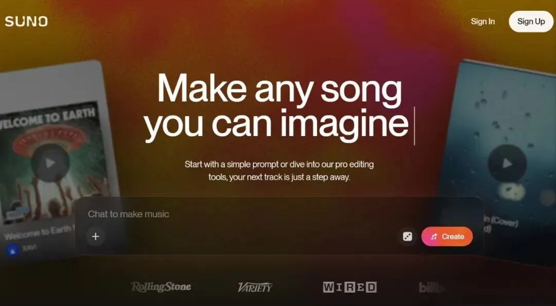 在AI音乐的垂直领域更为知名的海外玩家是Suno和Udio。两家公司均致力于让AI能够根据文字描述,直接生成包含人声、歌词和编曲的完整歌曲。