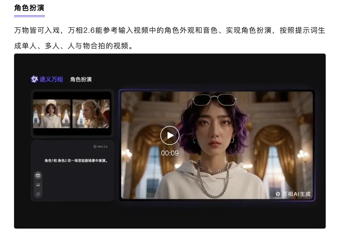 新一代万相2.6系列模型发布:支持角色扮演、多镜头生成功能