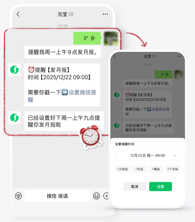 微信首个AI助手 元宝宣布支持微信一句话设置提醒