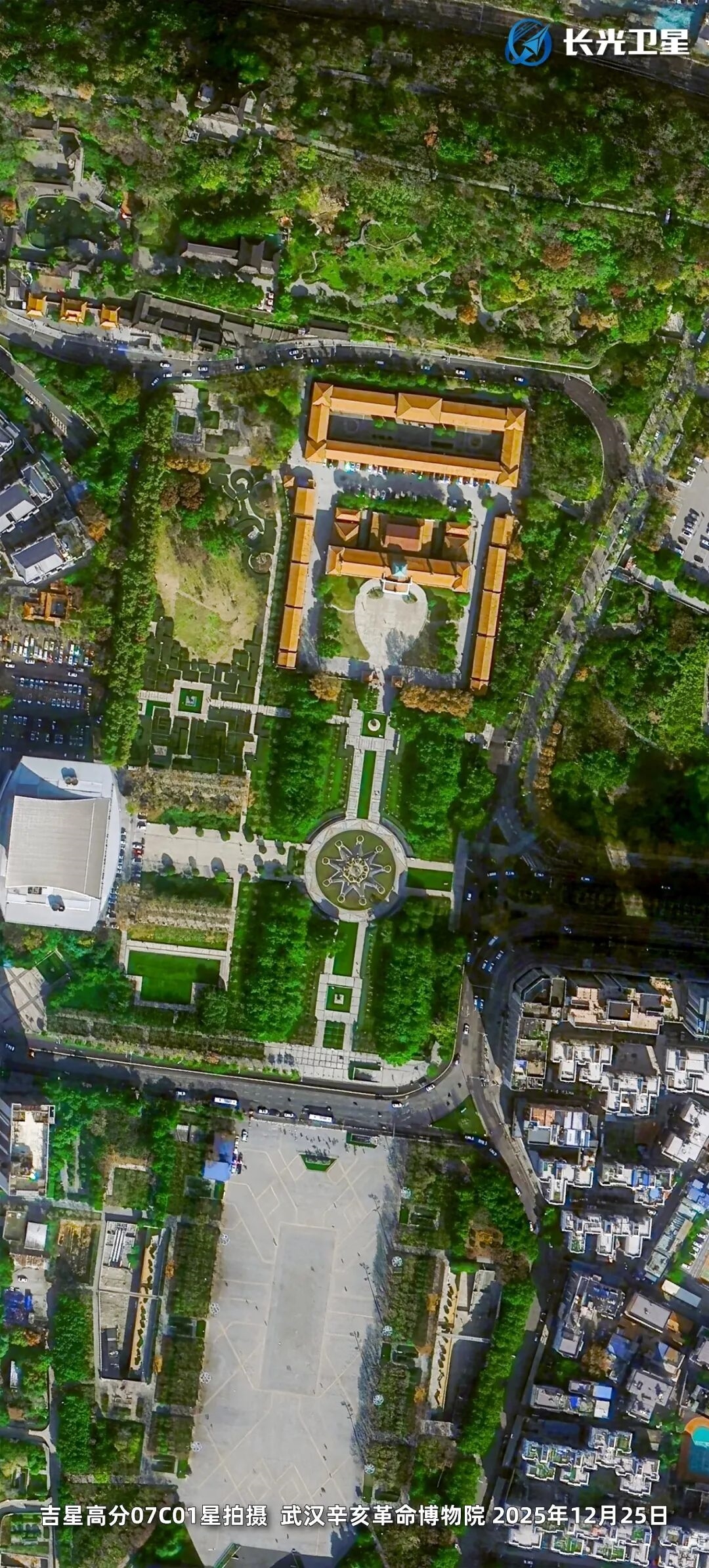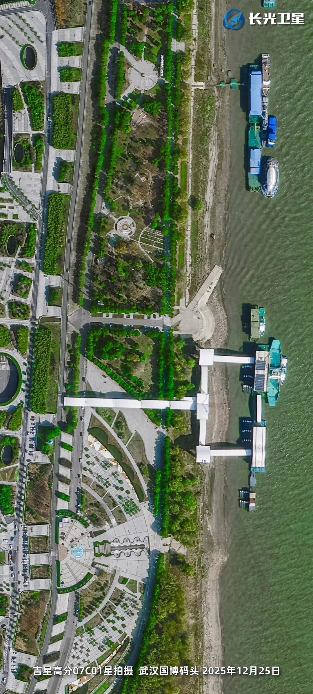 当冬日的暖阳洒向大地,吉林一号卫星镜头清晰地捕捉到了江城武汉。低斜的阳光,赋予了这座城市更立体的光影氛围,一切景物的影子都被显著拉长,构成了一幅静美与活力交织的冬日武汉多元城市图景。我们的目光从城市的历史轴线开始。