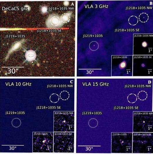 J1218/1219+1035的三个黑洞,都是AGN,由此可见它们是有多么活跃!