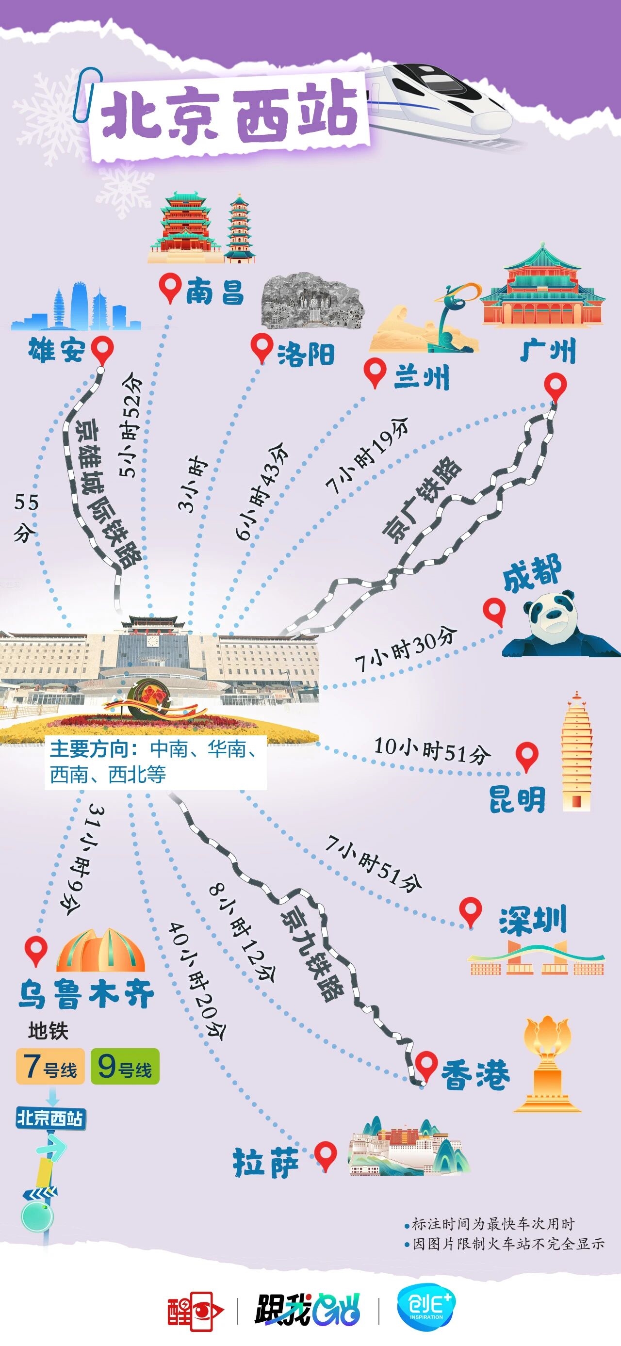 接下来,就看看北京8个火车站各自通往哪些重点城市,以及所需最短时间吧。