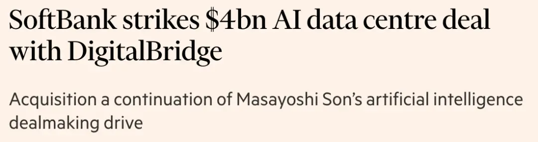 另一边同意斥资40亿美元收购数据中心投资公司DigitalBridge,“加强其在人工智能领域的布局”。