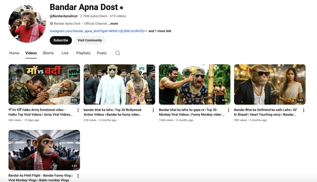 相关研究发现,在调查样本中,一个叫Bandar Apna Dost的高观看量频道累计播放量高达24亿次。