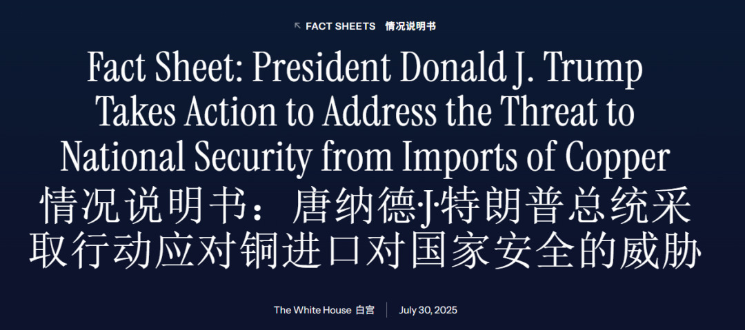 今年中特朗普签署公告,宣布对进口的半成品铜产品(如管材、线材)和铜衍生品加征关税。