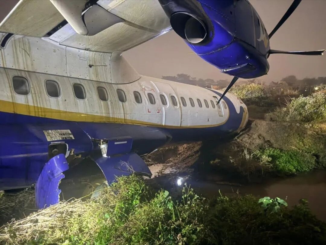 周五晚上,尼泊尔一架佛陀航空ATR-72飞机(航班号为U4901)在贾帕巴德拉普尔机场降落时,飞机冲出跑道,导致多人受伤住院。现场照片显示,这架螺旋桨客机冲出跑道约300米,冲过一条小溪后才停下,机身陷入草地和泥泞地带,且严重受损。