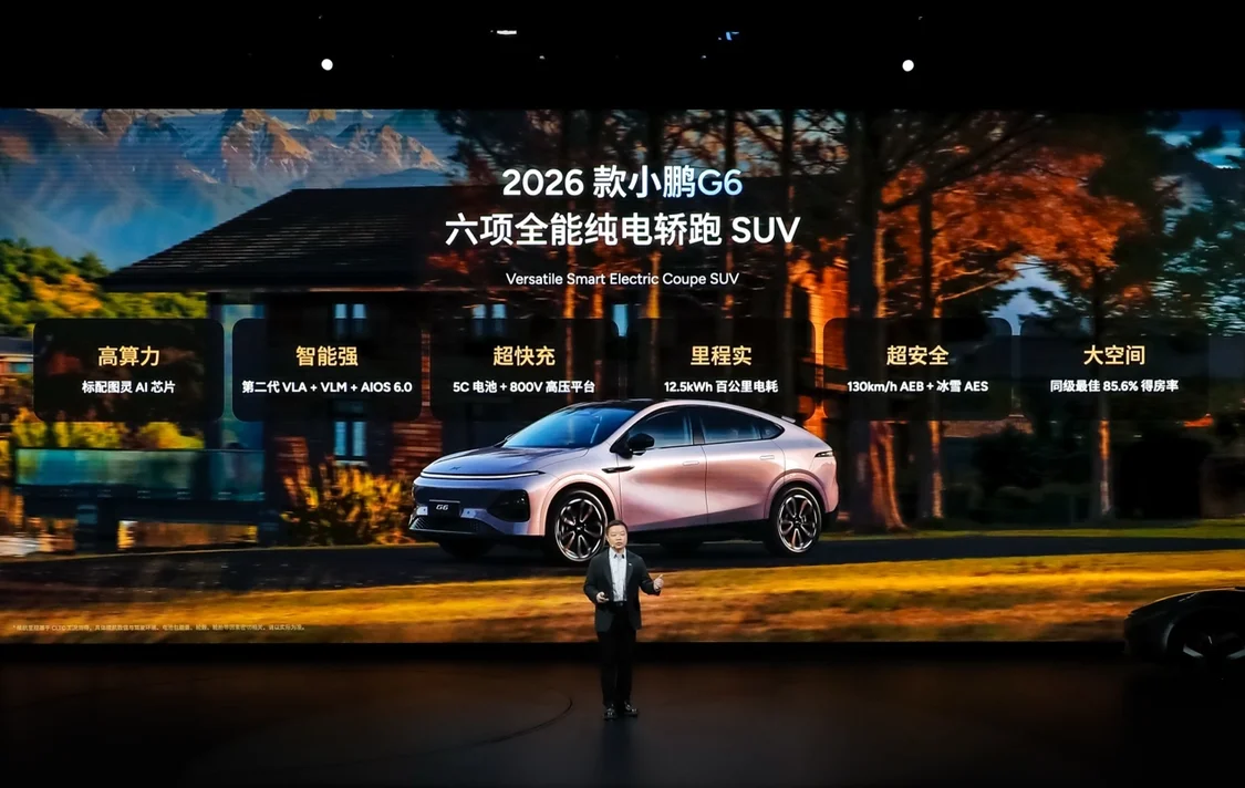 1月8日,小鹏汽车在广州举办发布会,正式推出2026款小鹏P7+、小鹏G7超级增程、2026款小鹏G6及2026款小鹏G9四款新车。全系Ultra版均将搭载小鹏第二代VLA系统。