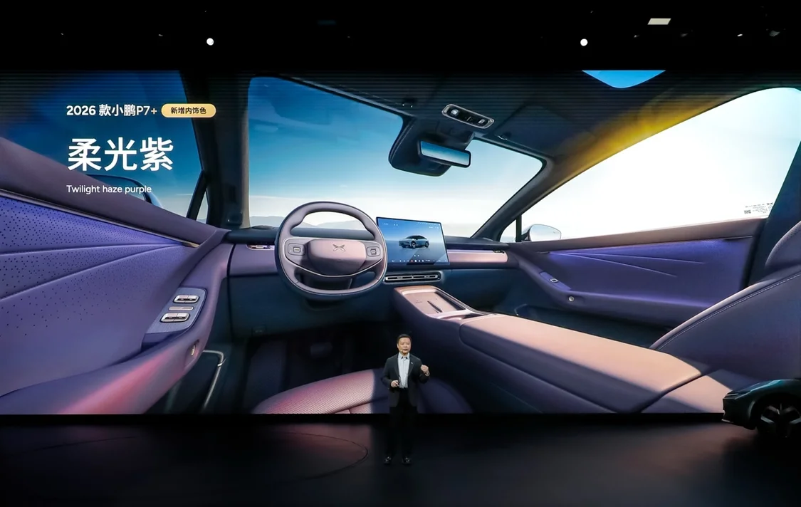 1.2026款小鹏P7+:作为面向36国市场的全球车型,2026款P7+进行了104项体验更新,一级总成件焕新比例达36%。