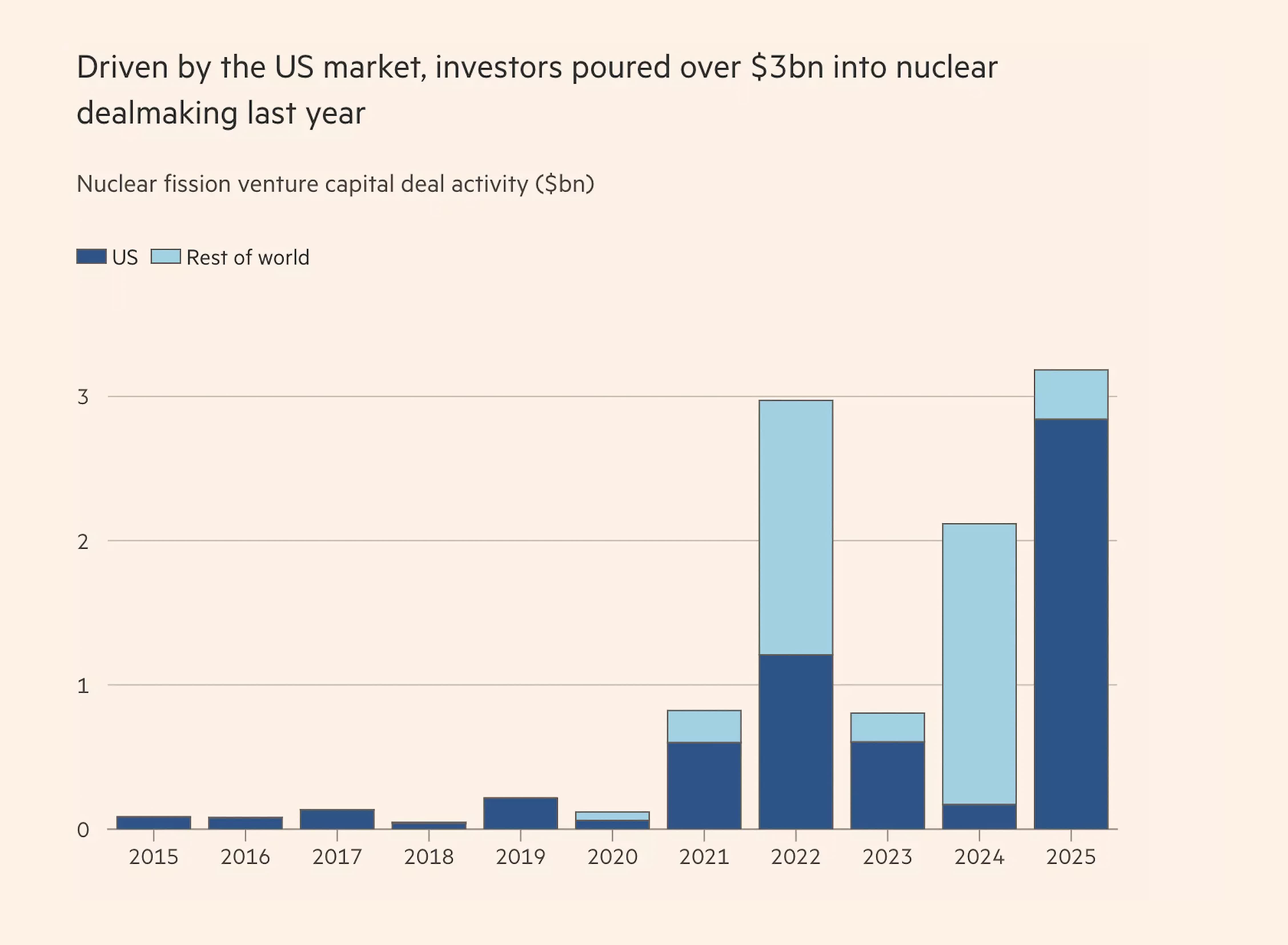 Vogtle 项目及其他类似工程的巨额亏损一度将西屋电气拖入 2017 年的破产保护程序,也让美国公用事业企业对再度押注大型核电机组倍加谨慎,普遍担忧财务与声誉风险。 与此同时,股权投资和基础设施基金开始将目光转向被寄予厚望的小型模块化反应堆(SMR):2025 年,相关初创企业在私人资本市场的融资额创下 30 亿美元新高,所开发机组单堆功率通常为传统大型机组的三分之一甚至更低,强调工厂模块化生产、现场装配和分步扩容,以期降低单体资本压力和整体项目风险。