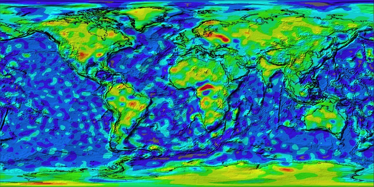 这是基于NASA卫星Magsat、OGO-2、OGO-4和OGO-6测量数据构建的地壳磁化模型。暖色(红色)表示磁化强度最强,冷色(蓝色)表示磁化强度最弱。(图片:NASA)