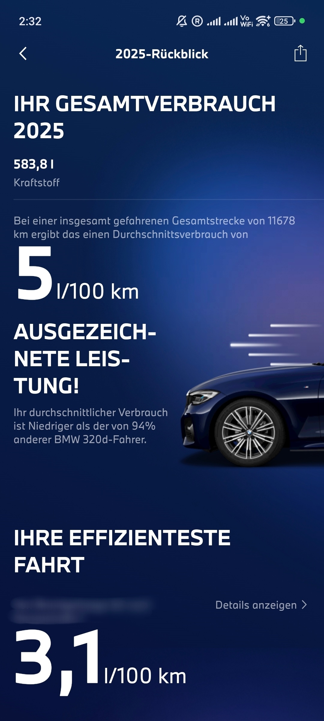 电动车在中国市场发展得如火如荼,然而在欧洲则是另一番景象,可谓是冰火两重天。近日有居住在德国的博主“pkpk1”晒出了自己的用车数据,一定程度上能够解释为何电动车在欧洲发展不起来。他表示:许多人问过我在德国为什么不开电车,附图是我主要通勤用车G21 320d在2025一整年11678km的平均油耗,仅为5升,折合百公里花费8.5欧