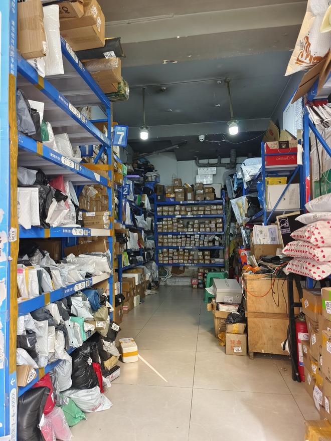 某家快递驿站内部货架