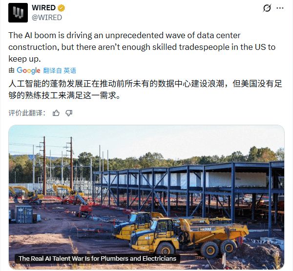 Google、微软可以囤积芯片、投资电站,但如果没有足够多的电工把电接进机房、没有管道工把冷却系统装好,再强的AI也只能停在图纸上。