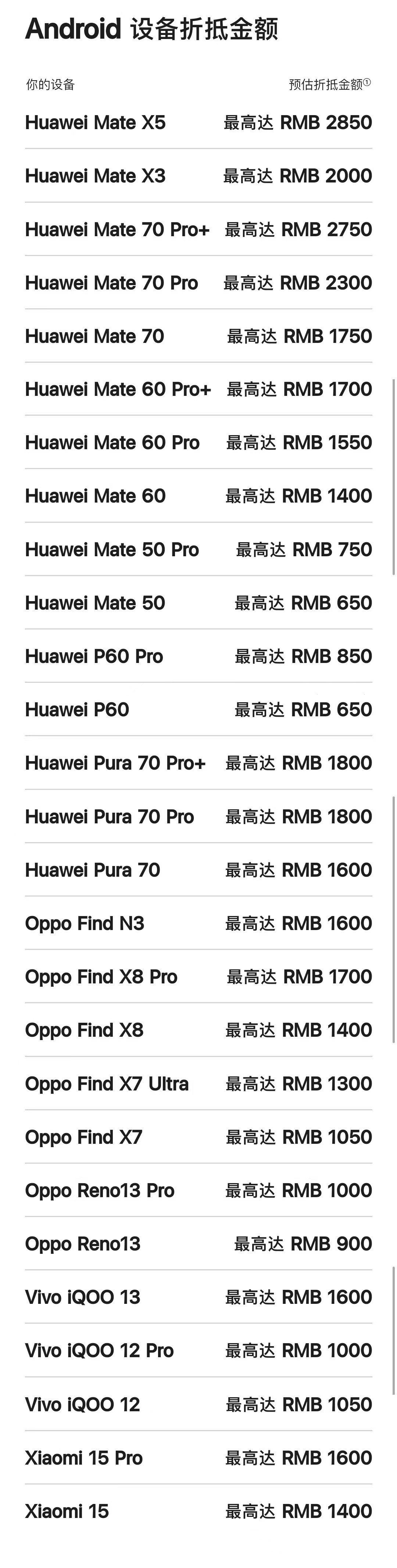 Oppo Find X8 Pro最高可抵1700元;小米15 Pro最高可抵1600元。
