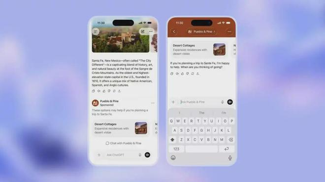 虽然 AI 的回复内容里不会有广告内容,但 ChatGPT 显示的广告将根据你的对话上下文进行匹配,比如你在问食谱的时候会出现相关食材或配送服务的广告。