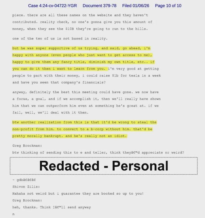 近日,加州北部地区法院解封逾百份文件,包括 OpenAI 总裁 Greg Brockman 2017 年的私人日记摘录。