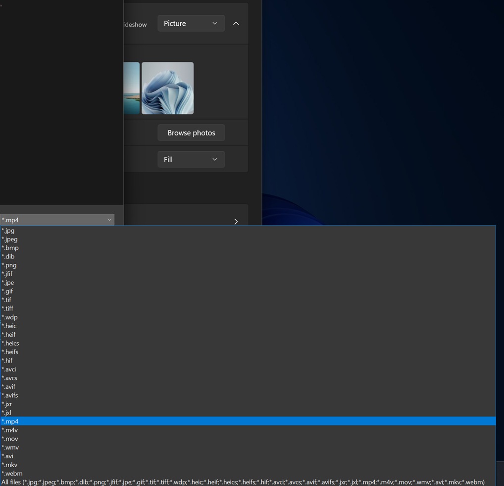 值得注意的是,微软此前还在内部测试允许将 .mp4 等视频文件直接设为桌面背景的功能,不过在近期构建版本中已经看不到相关选项。根据报道,微软曾在预览版中支持多种视频格式作为桌面背景,包括 .webm、.mp4、.m4v、.mov、.wmv、.avi、.mkv 等,入口同样位于“设置 > 个性化 > 背景”,用户需要通过“浏览照片”(暂未更名)来选择对应视频文件。