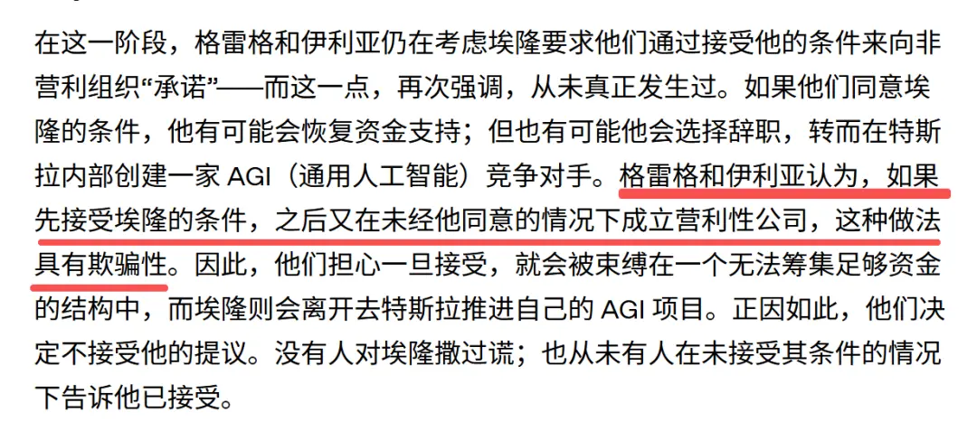 按照OpenAI的说法,正因为Greg和Ilya不想道德破产,不想欺骗马斯克,所以他们拒绝了马斯克的最后通牒!
